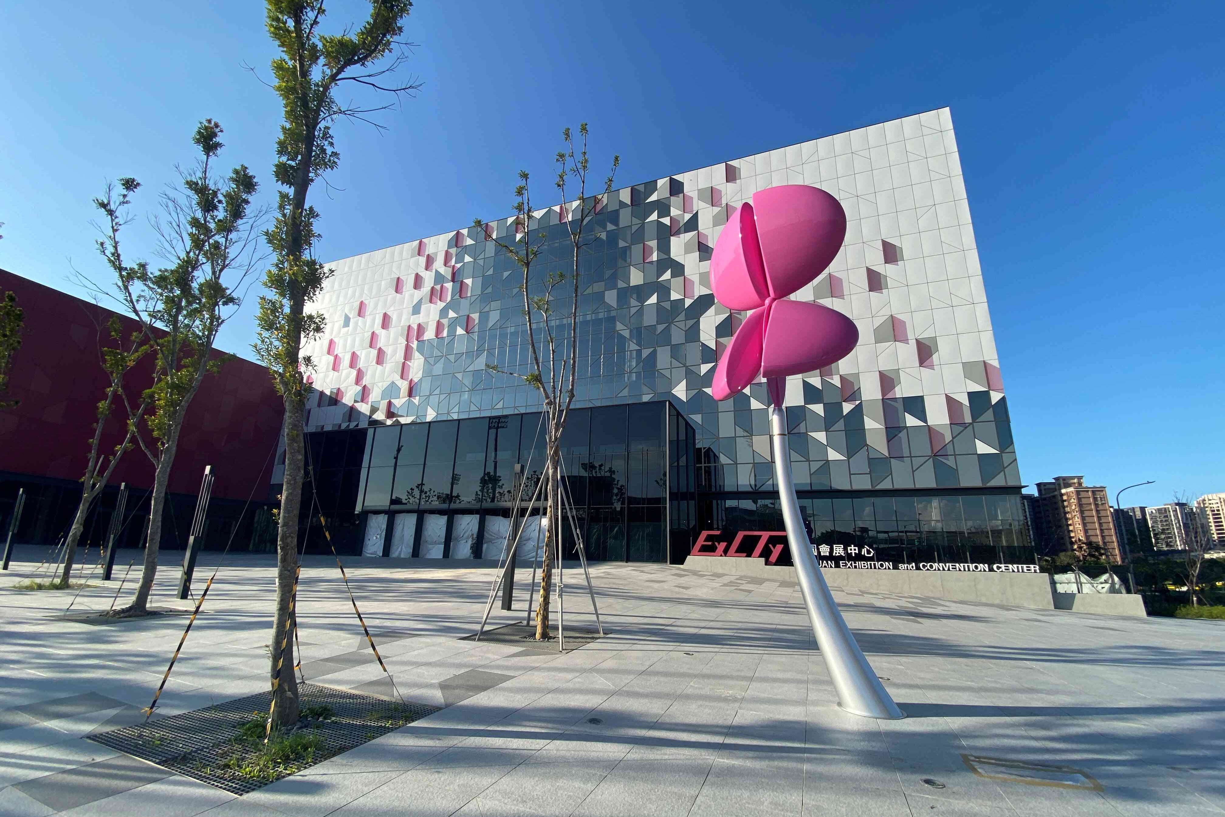 以《匯聚·綻放》為策畫主軸,呼應潘冀聯合建築師事務所團隊使用桃花元素所創造的建築空間,加入科技藝術的嶄新創意,展現當代新創的思維模式。三件作品造型都帶有花朵綻放、開枝散葉的繁盛意象。隱喻著桃園開創新局、城市躍升。,期許匯聚人流、信息流、資源流,向海外開展、連接世界,亮眼綻放,成為全球會展品牌。